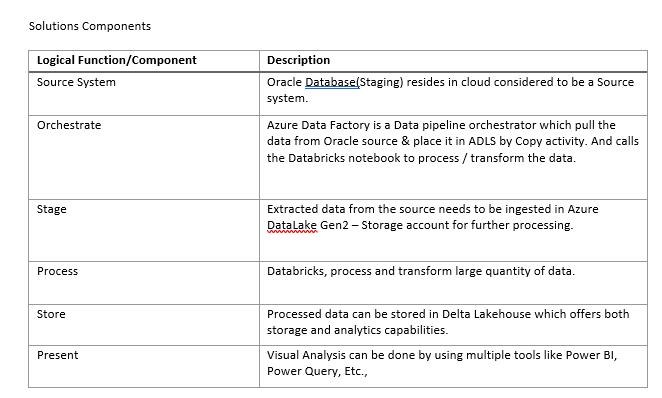The logical architecture reflects data movement from source systems, transformation through the data platform and load the data in Delta Lake for future reports or Dashboards.